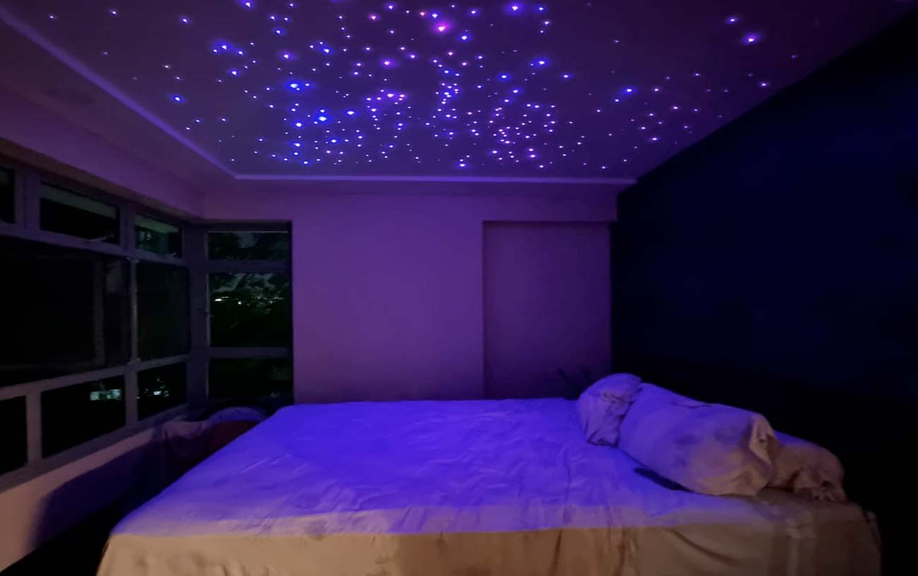 Electrical works are not only about functionality. In many homes, lighting also plays an important role in creating personal meaning and atmosphere. Voltage Pro recently completed a special electrical project for an HDB unit at 476B Upper Serangoon View, where customised fibre optic lighting was integrated into the master bedroom ceiling.